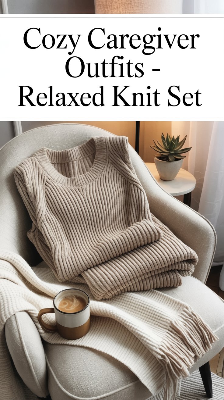 - Monochrome comfort outfit neutral tones knit pants caregiver emotional days