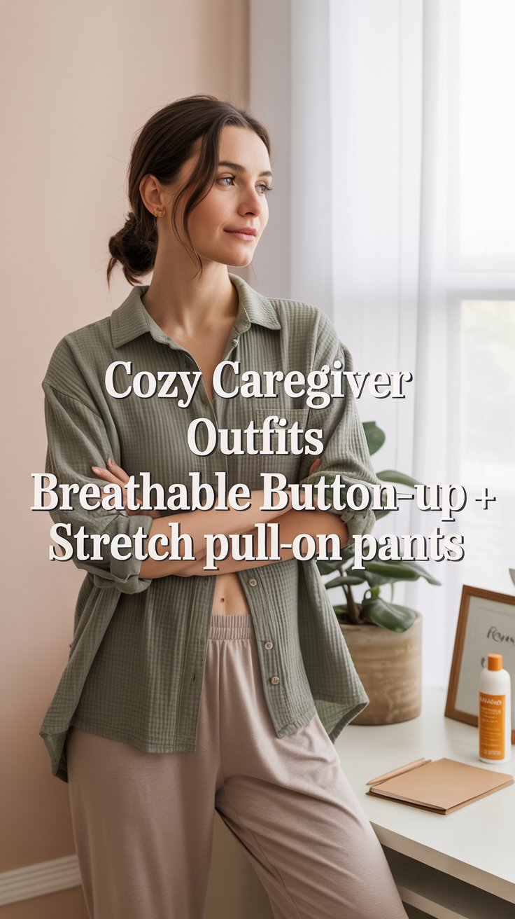 - Caregiver button up pull on pants functional calm long days 2026 outfits