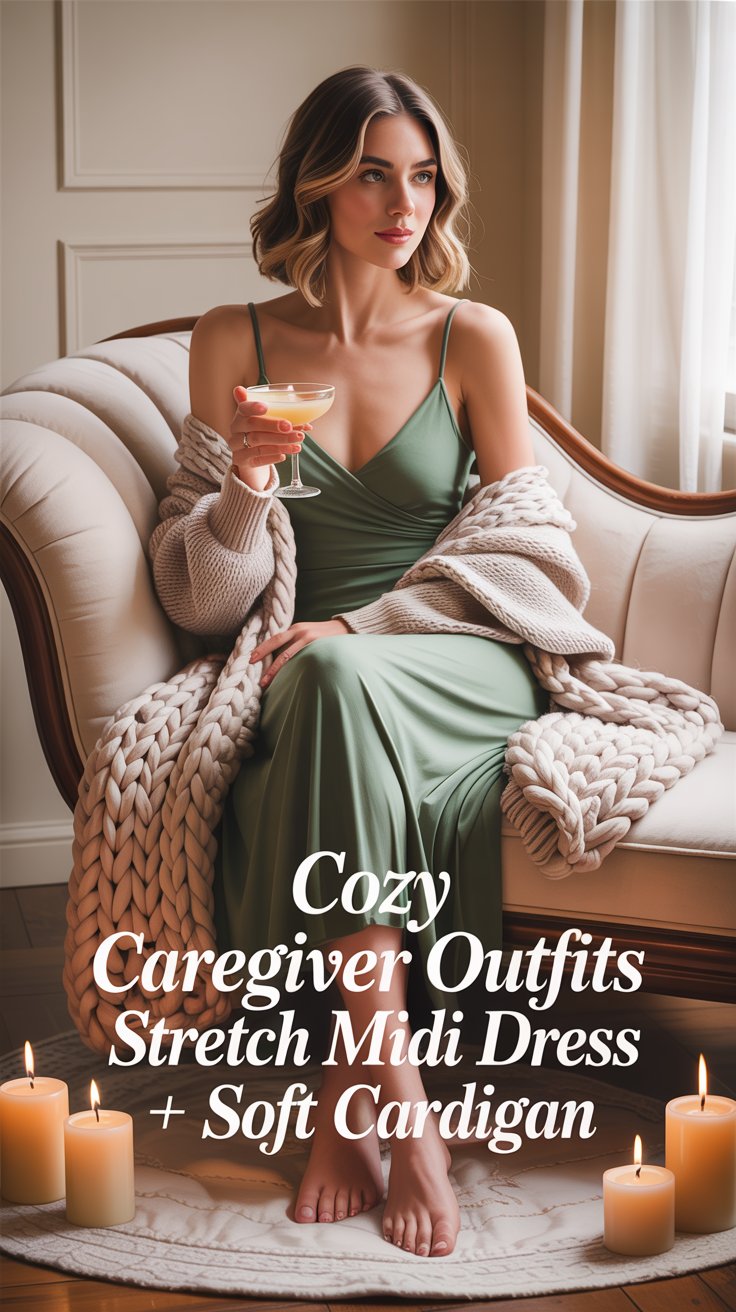 - Caregiver midi dress cardigan sets no cling sitting long days 2026 cozy