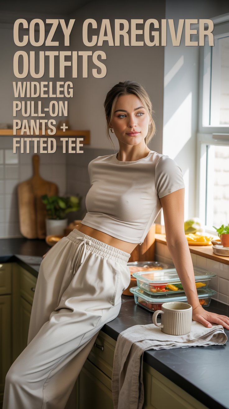 - Caregiver wide leg trousers fitted tees no drag hems cozy 2026 outfits