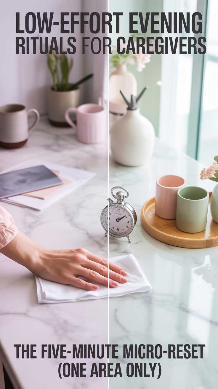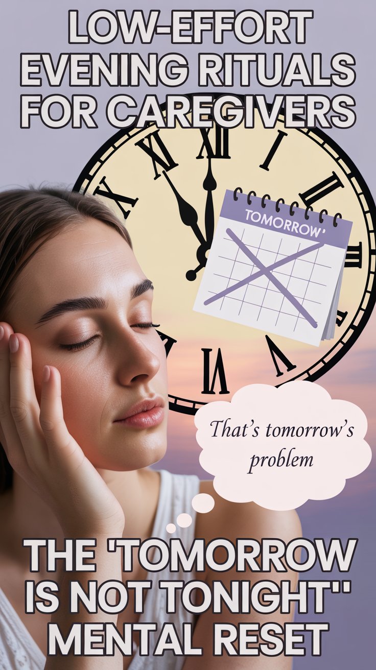 That’s why low-effort evening rituals for caregivers have to meet a very specific standard: they must work when you have no energy, no patience, and no interest in becoming a better person tonight. These rituals aren’t about rest, sleep, or self-care glow-ups. They’re about resetting your system just enough so the day doesn’t follow you into tomorrow.